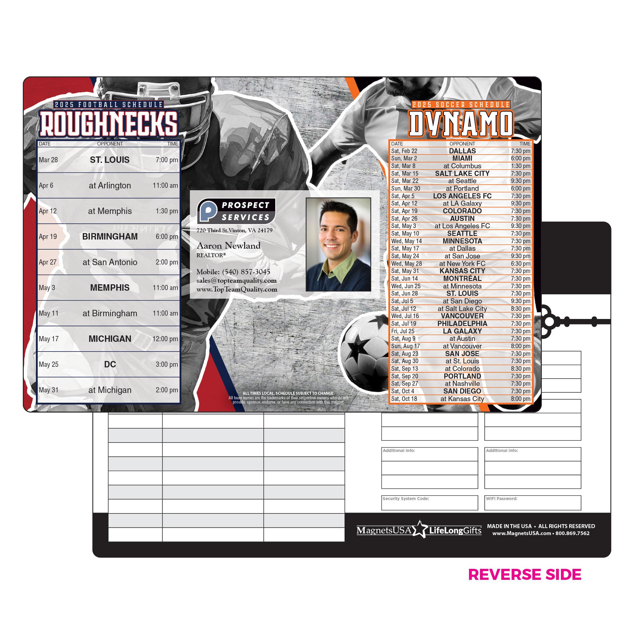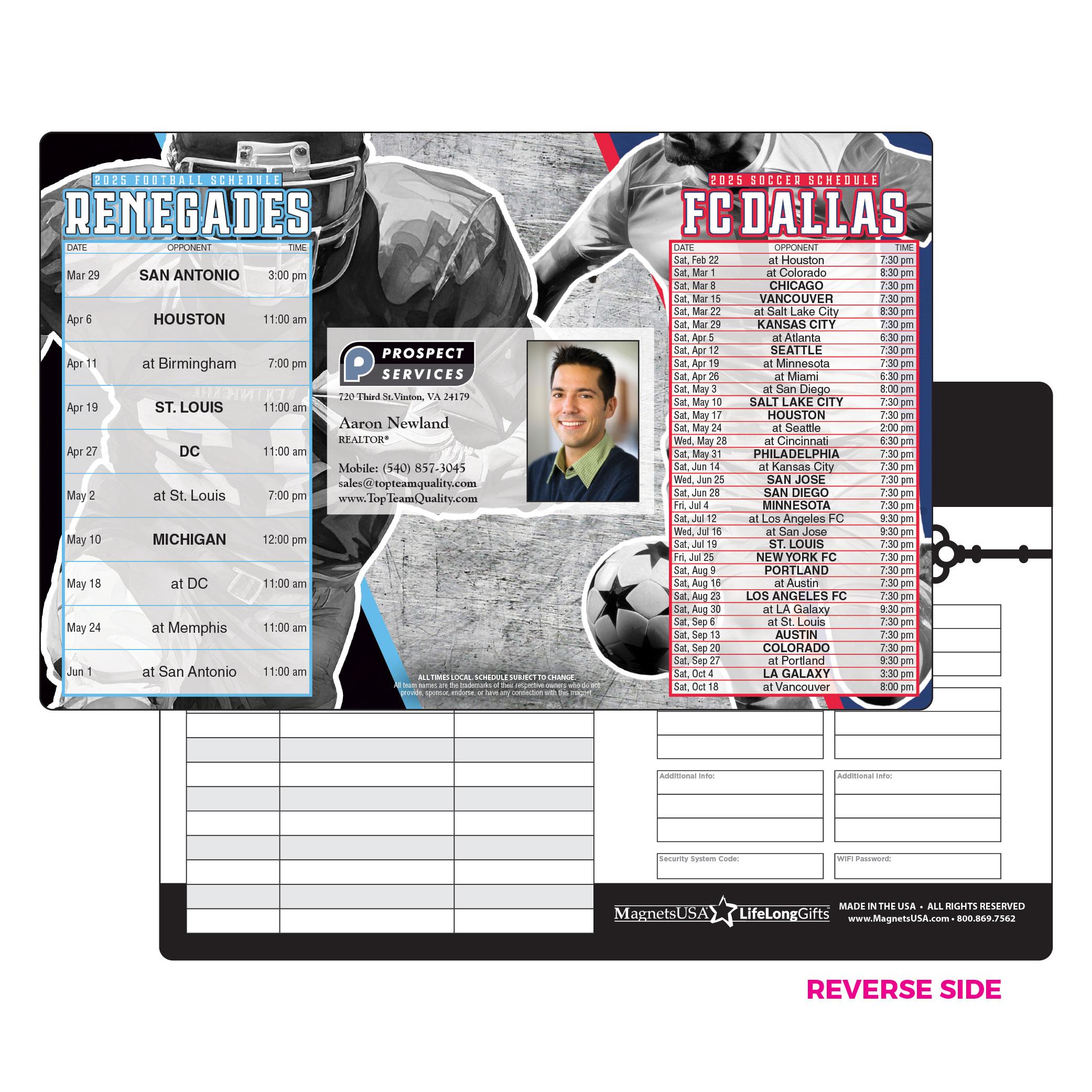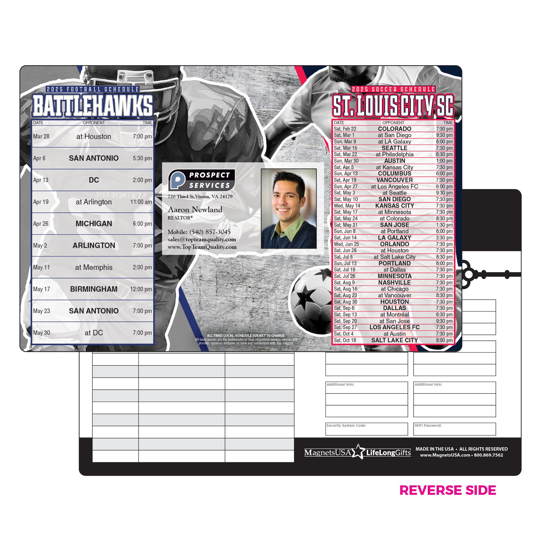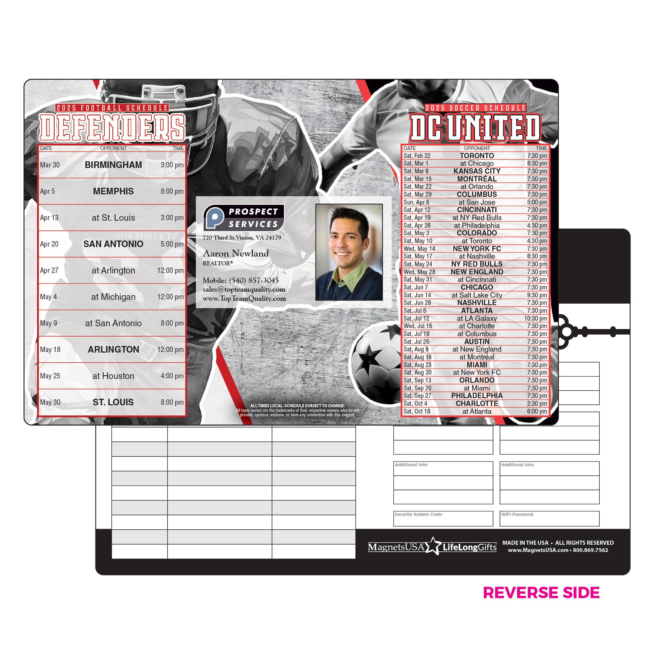 Calling all real estate MVPs! Boost your business game with our exclusive Full-Color Printed Magnetic Schedule featuring the thrilling Spring Games of the UFL football leagues. Tailored to perfection, this personalized promotional tool is your winning play to score big in the world of real estate referrals.