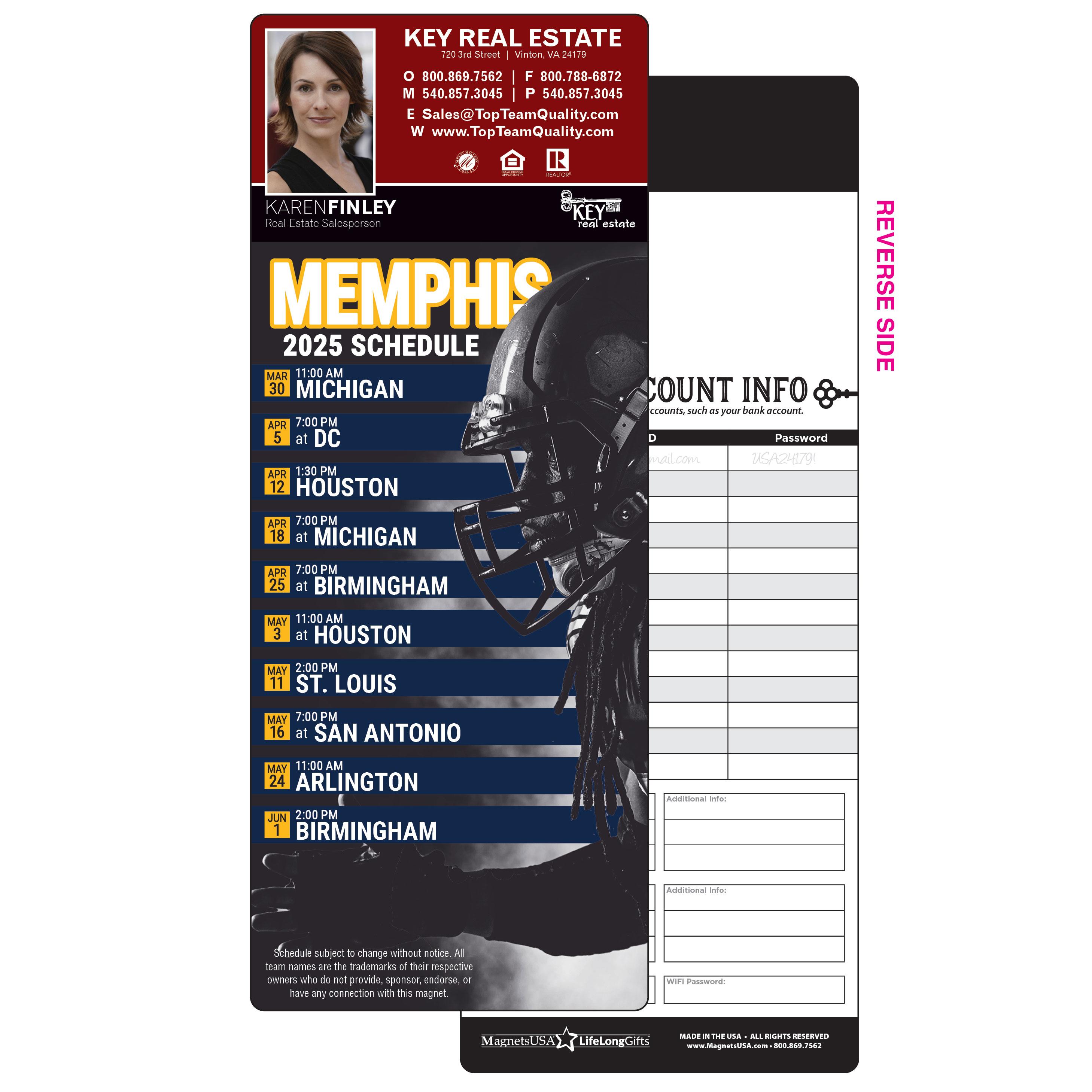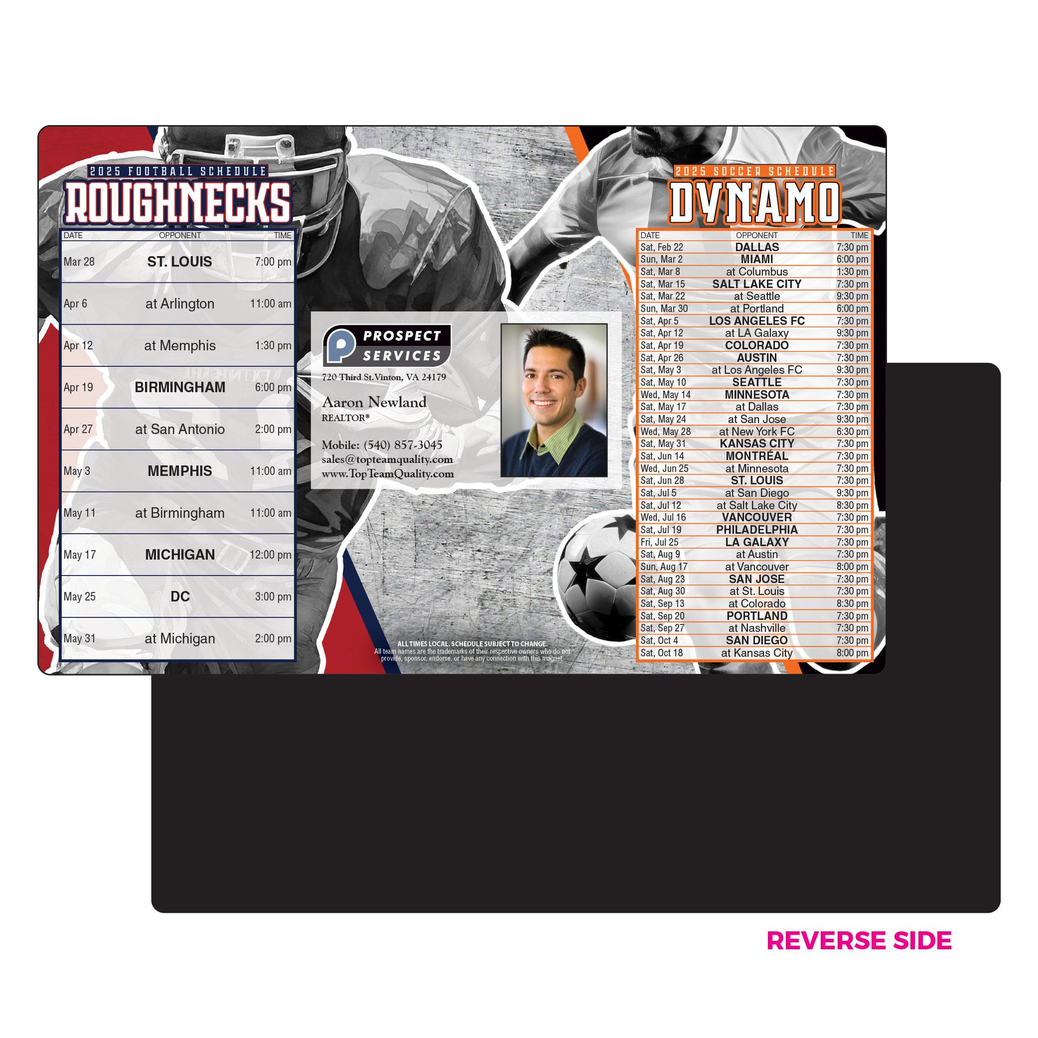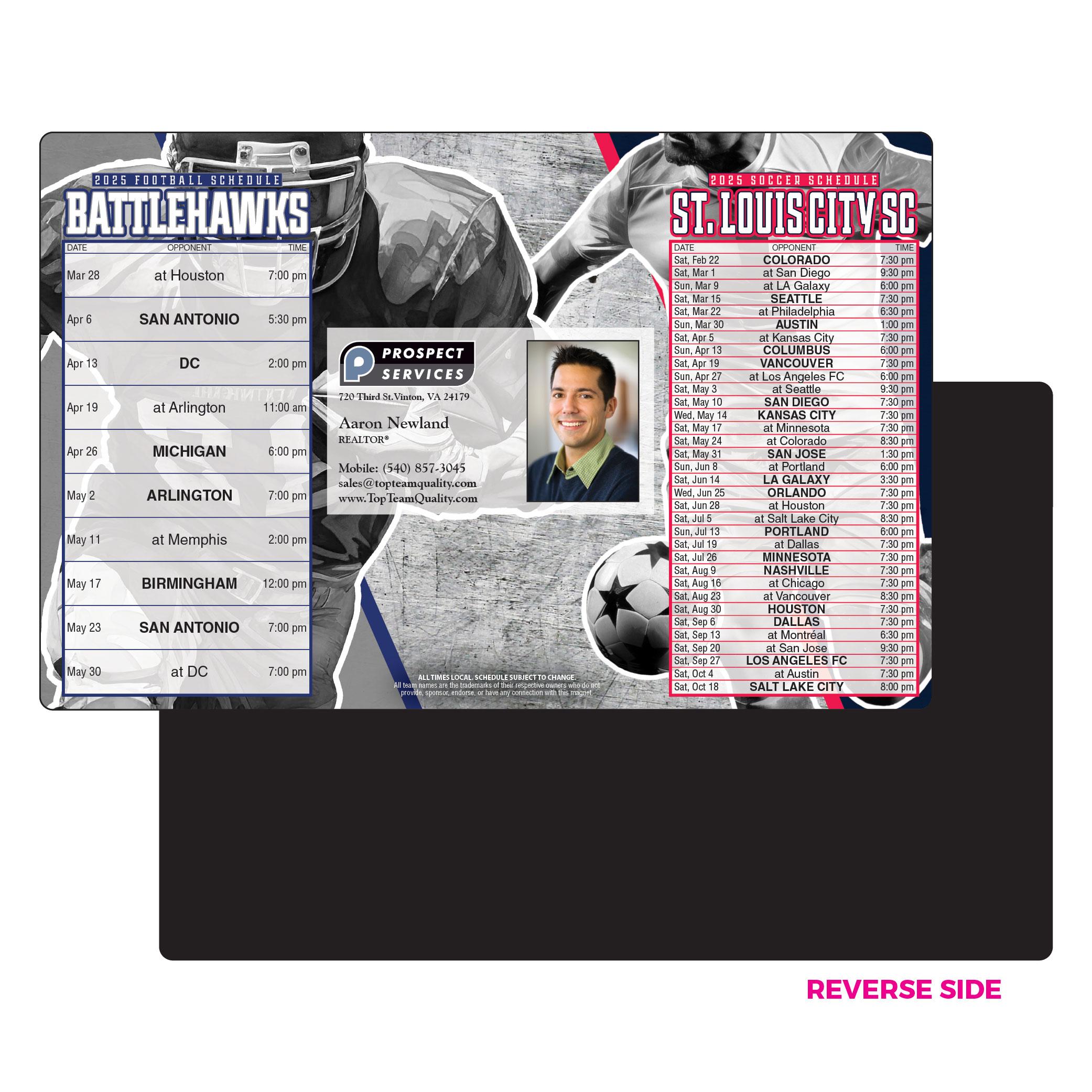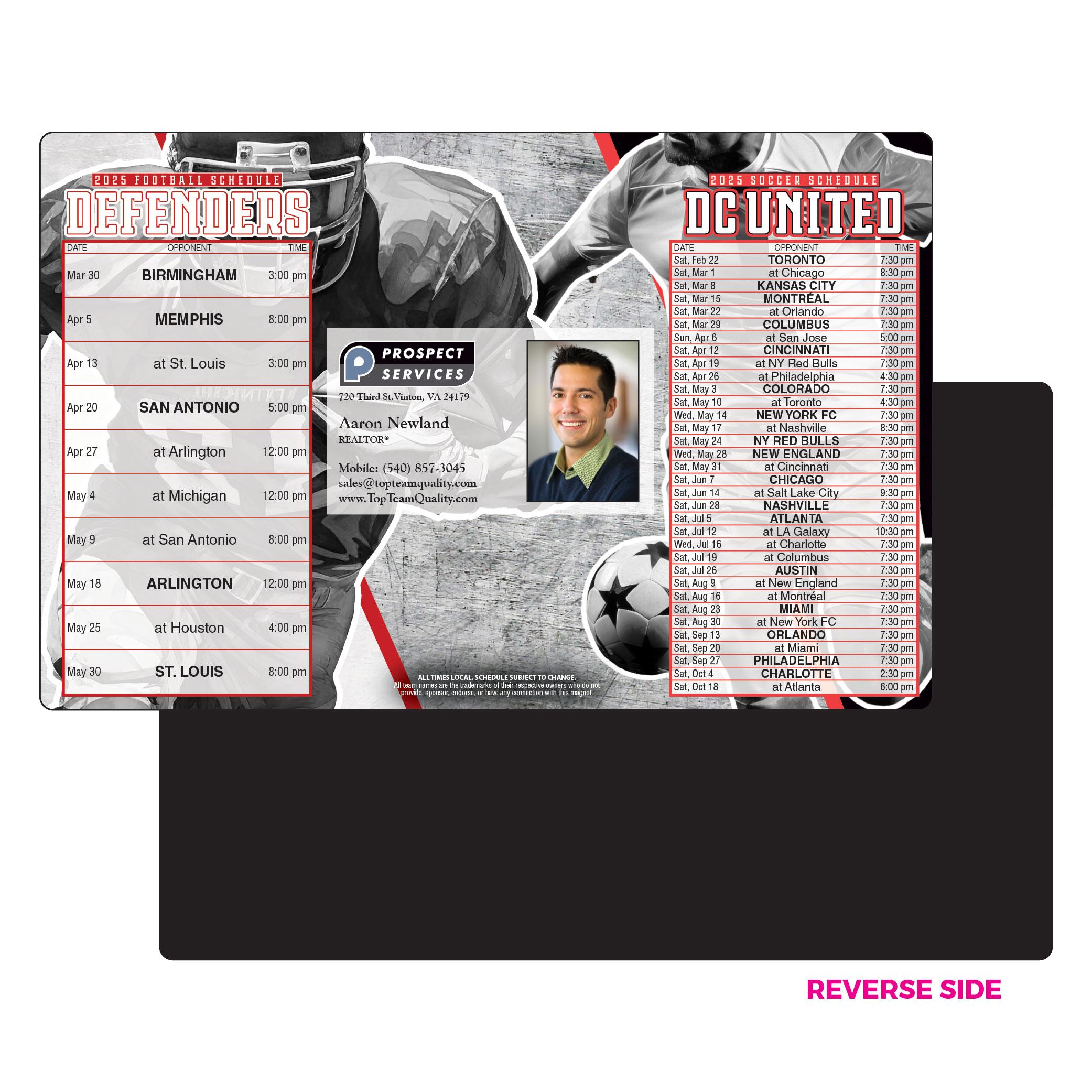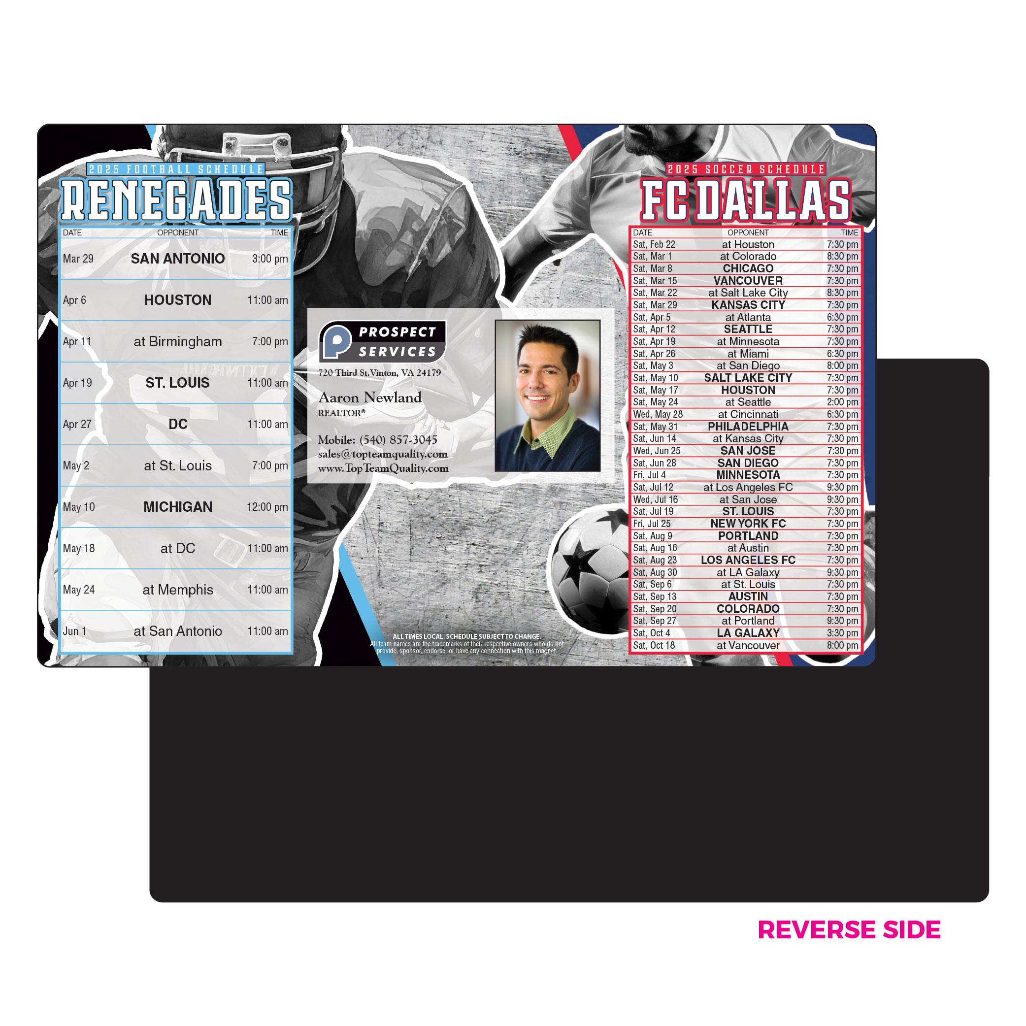 Calling all real estate MVPs! Boost your business game with our exclusive Full-Color Printed Magnetic Schedule featuring the thrilling Spring Games of the UFL football leagues. Tailored to perfection, this personalized promotional tool is your winning play to score big in the world of real estate referrals.
