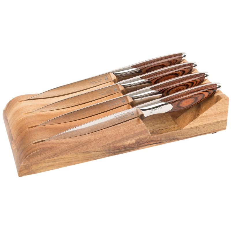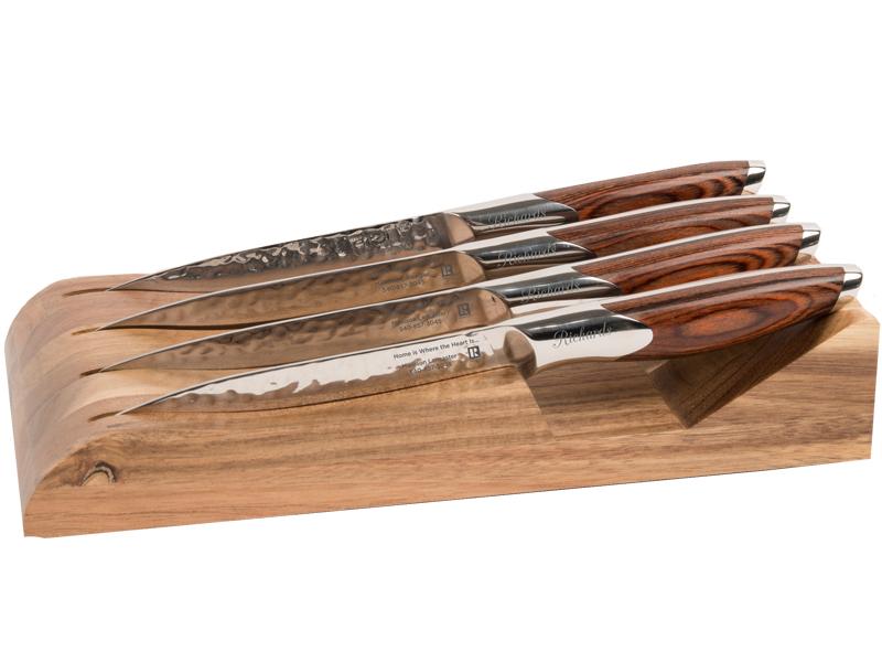 We offer custom engraving for all of our kitchen knife sets to help you stay top-of-mind. Our line of German carbon steel knives are a popular solution for client and corporate gifts as well as personal gift giving. Not sure how to care and maintain your blades? Find our knife care tips here along with instructions for honing and sharpening your blades for peak performance.
